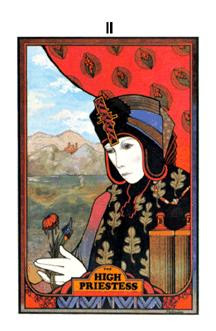 This started out as a meditation on a Tarot card -- The High Priestess, from the Aquarian Tarot, designed by David Palladini.  This is a very beautiful Tarot deck -- the style is Art Deco.  Gazing upon its cards for a while can give one a feeling of serenity.   I find certain (not all) Tarot decks very conducive to giving free rein to the imagination.  I am not at all interested in using these cards for fortune-telling purposes.